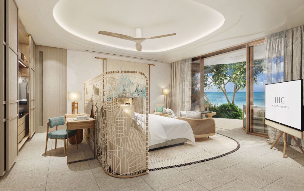 يضم المنتجع 210 غرفة وجناحًا أنيقًا، بإطلالات آسرة على مياه البحر الأحمر والمناظر الطبيعية التي تحبس الأنفاس. وفي إطار التعاون العالمي لعلامة انتركونتيننتال مع المصممة العالمية إيزابيل شوفال، تم تصميم الغرف بأسلوب يعزّز الراحة، مع مرونة تامة لتلبية احتياجات الضيوف المتغيرة على مدار اليوم. أما التصميم الداخلي، الذي أبدعته شركة فوستر بارتنرز بالتعاون مع شركة كريستينا زانيك للاستشارات، فيروي حكاية تصميمية متعددة الطبقات تمزج بين الأناقة العصرية والبساطة المتناغمة مع الطبيعة. تتميّز الغرف والأجنحة في المنتجع بواجهات منحنية وتصاميم داخلية مفتوحة وانسيابية تعكس تناغمها مع البيئة الطبيعية المحيطة. وتُضفي المواد الطبيعية مثل الخشب، والرافيا، وقشور جوز الهند، إلى جانب قطع الديكور المصنوعة يدويًا، لمسات دافئة وأصالة متميزة. كما تنتشر في أرجاء المنتجع أعمال فنية مختارة بعناية لفنانين سعوديين بارزين، احتفاءً بالإرث الفني الغني للمملكة. وقد حظي المنتجع بتقدير مبكر من خلال فوزه بجائزة “أفضل مفهوم تصميم فندقي”، تأكيدًا على رؤيته الطموحة ونهجه الابتكاري، وذلك قبيل افتتاحه الرسمي.