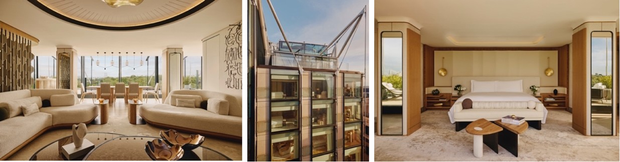 أما جناح إيموري بارك، الذي أبدعه المصمم أندريه فو، فيوفّر إطلالات خلابة على هايد بارك مع إمكانية الربط لتشكيل جناح من أربع غرف نوم، ما يتيح توازناً مثالياً بين المساحات المشتركة والخصوصية للعائلات الكبيرة. ويمكن للضيوف الاستمتاع بتجارب مخصصة داخل الجناح، مثل أمسيات الغروب مع كوكتيلات تاتو المميزة في ركن المشروبات على السطح، أو ورش عمل خاصة لتحضير الكوكتيلات والمشروبات بإشراف فريق الفندق.