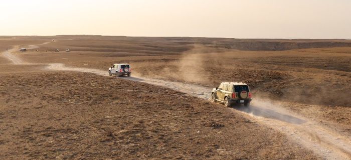 يُذكر أن حافة العالم تقع شمال جبال طويق التي تمتد لمسافة تصل إلى 1,000 كيلومتر، وهي جرف صخري بارتفاع يقارب 300 متر، وتُعد من أبرز المعالم الطبيعية في السعودية. ويُعد الطريق نحوها تحديًا حقيقيًا، إذ يمر عبر سهول شاسعة تفتقر إلى شبكات الاتصال ولوحات الإرشاد، وتنتشر فيها آثار مسارات الإطارات الناعمة والأخاديد التي شكّلتها مياه الأمطار.